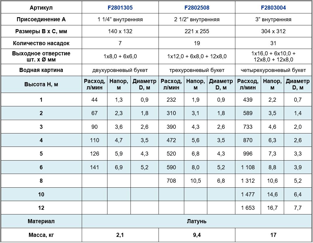 Высота струи max, м